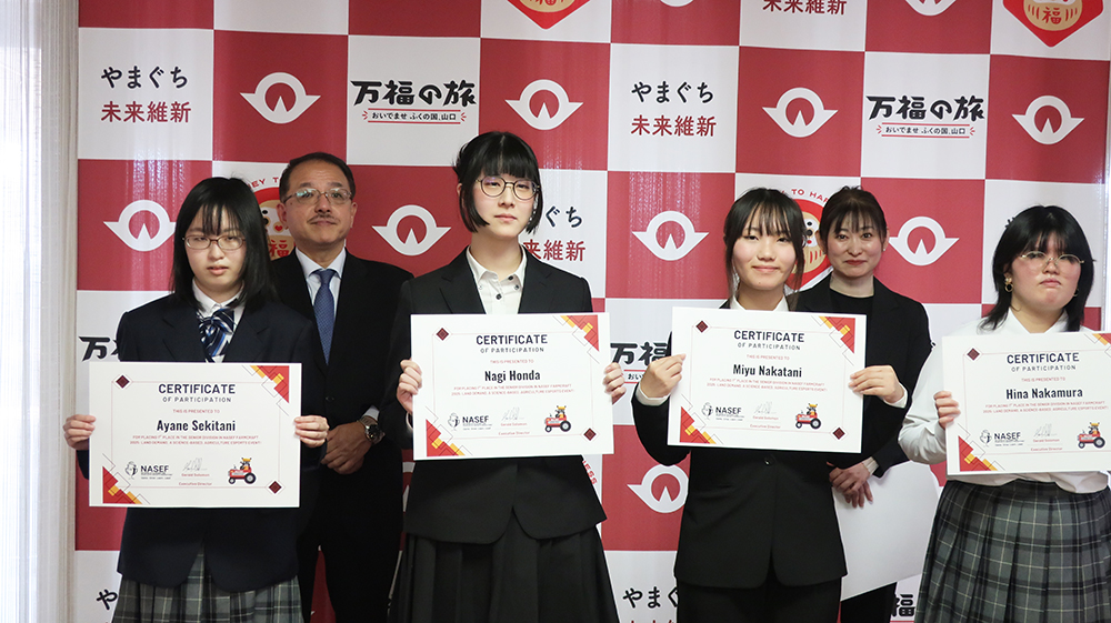 1月13日、山口県庁を訪問し、Farmcraft世界1位獲得の報告をさせていただきました。